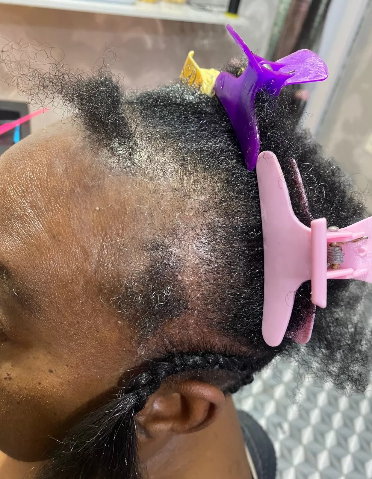 Cliente com falhas no couro cabeludo